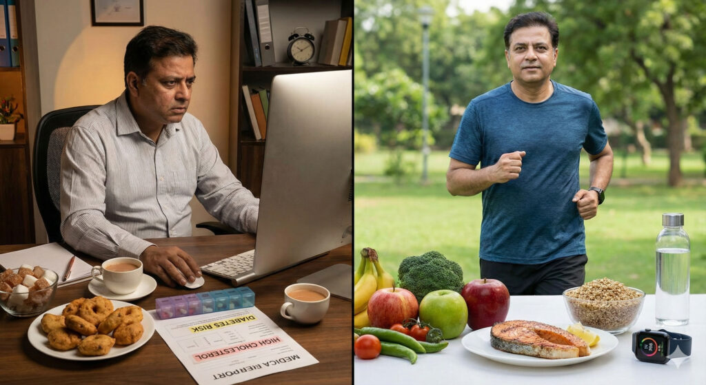 ഒരു വർഷം കഴിഞ്ഞു ഇപ്പോൾ വ്യായാമം പൂർണ്ണമായും നിർത്തി, വീണ്ടും ബുദ്ധിമുട്ടുകൾ കാരണം രക്തം പരിശോധിച്ചപ്പോൾ രക്തത്തിലെ പഞ്ചസാരയുടെ അളവ് കൂടുതൽ, പിന്നെ കൊളസ്ട്രോളും. ഡോക്ടറെ കാണിച്ചപ്പോൾ എല്ലാത്തിനും ഗുളിക എഴുതി എന്നിട്ട് പറഞ്ഞു പ്രമേഹം ഉണ്ട് നിങ്ങൾക്ക് ജീവിതാവസാനം വരെ ഗുളിക കഴിക്കേണ്ടി വരും, മധുരം പൂർണമായും ഒഴിവാക്കുക, ആഹാരം ക്രമീകരിക്കണം, വ്യായാമം ചെയ്യുന്നത് തുടരണം. കൂട്ടുകാരൻ ആകെ മാനസികമായി വിഷമത്തിലായി ഇനിയുള്ള ജീവിതകാലം മുഴുവൻ ഗുളിക കഴിക്കുക മാത്രമല്ല, നന്നായി ആഹാരം കഴിക്കാൻ സാധിക്കില്ല, “ജീവിതവും മാറി എന്ന പരമാർത്ഥം ( ഉൾകൊള്ളാൻ കഴിയുന്നില്ല